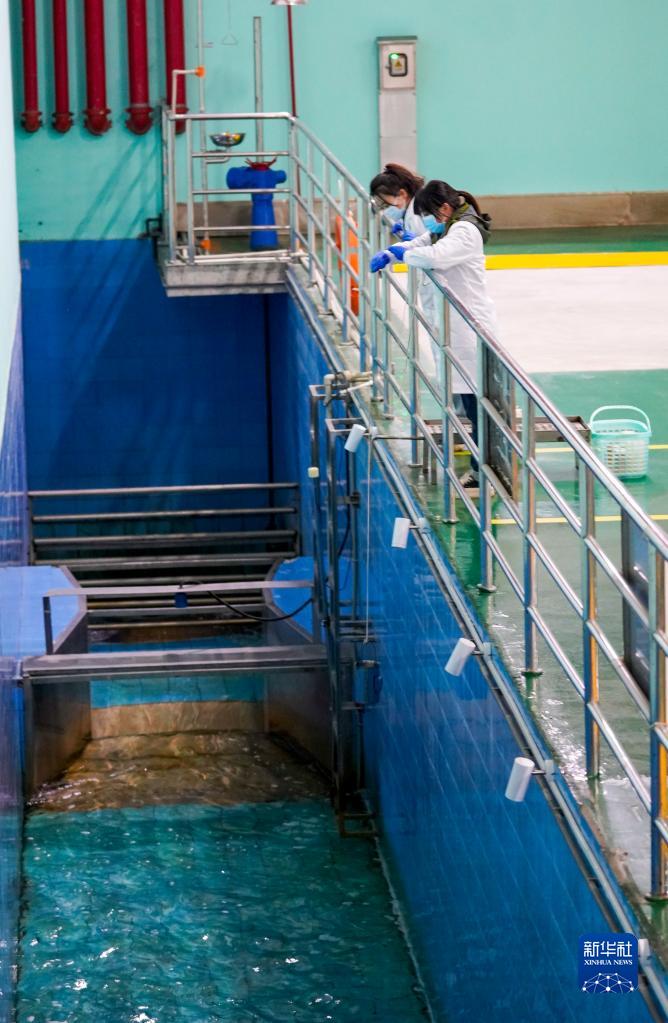 1月24日,化驗員在重慶市悅來(lái)污水處理廠(chǎng)的出水口提取水樣準備進(jìn)行化驗。