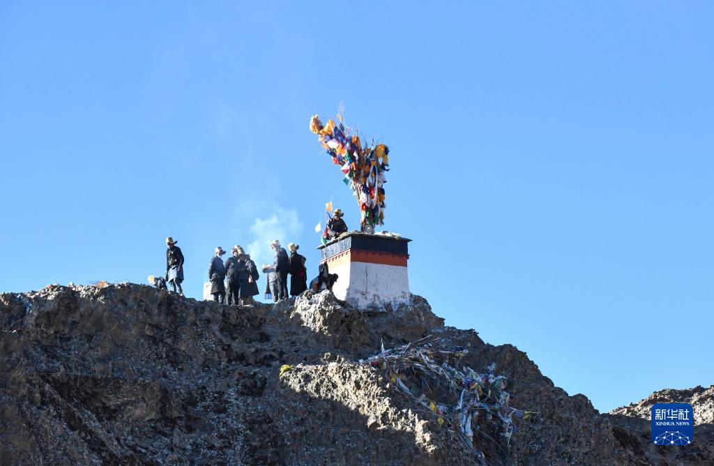 西藏日喀則地方藏歷農家新年期間,藏族群眾沿襲傳統,一大早就在山頂和自家屋頂上豎起新經(jīng)幡,祈愿新年風(fēng)調雨順、國泰民安。