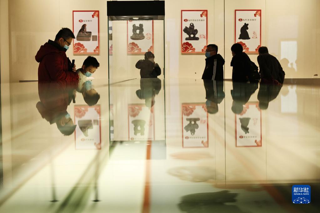 1月24日,游客在天津博物館觀(guān)看“大展宏‘兔’——天津博物館癸卯生肖文物展”。