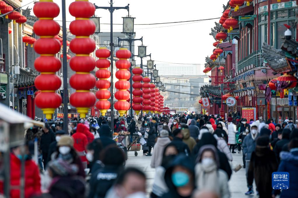 1月25日,人們在內蒙古呼和浩特市玉泉區大召前街休閑。