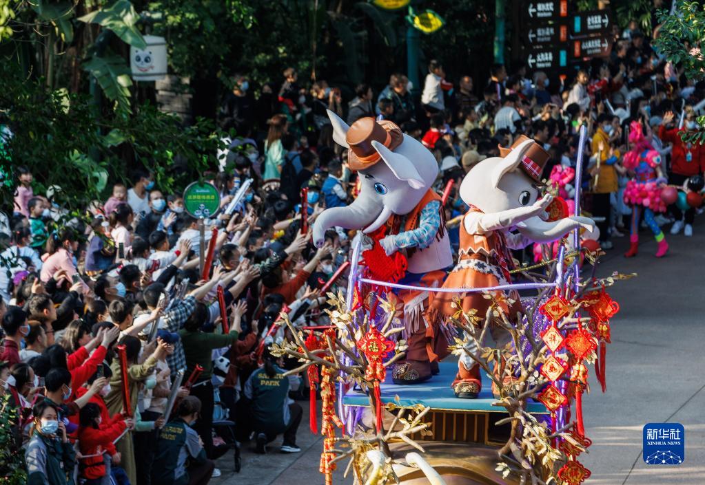 游客在廣州長(cháng)隆野生動(dòng)物世界觀(guān)看新年花車(chē)巡游(1月22日攝)。