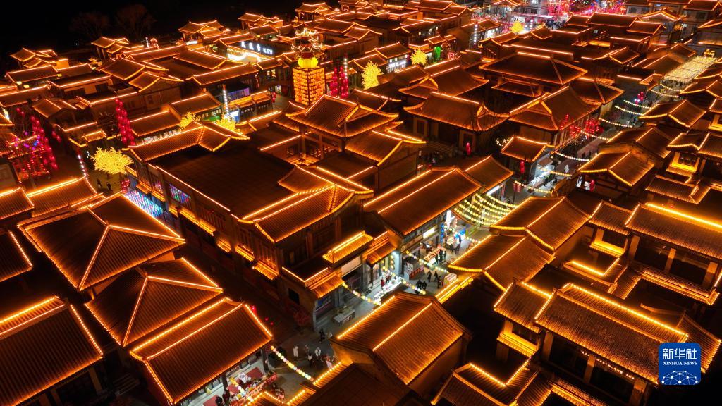 1月25日,游客在山東省臨沂市郯城縣郯國古城觀(guān)賞美景(無(wú)人機照片)。