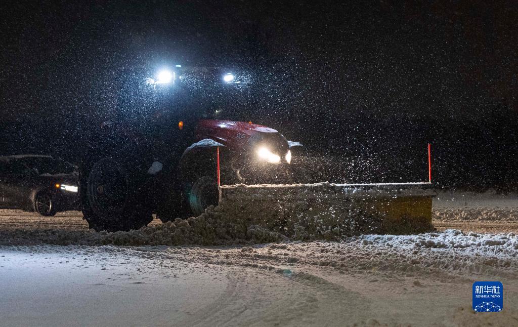1月25日,在加拿大大多倫多地區米西索加,鏟雪車(chē)清理道路積雪。