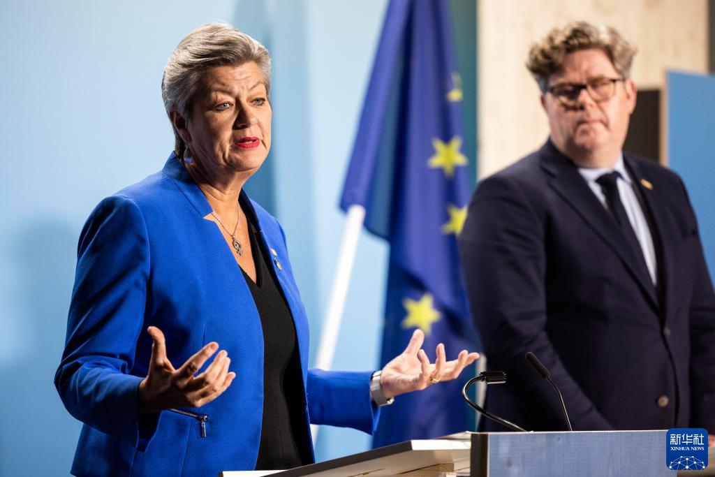 1月26日,在瑞典首都斯德哥爾摩,歐盟委員會(huì )負責內部事務(wù)的委員于爾娃·約翰松(左)在新聞發(fā)布會(huì )上發(fā)言。