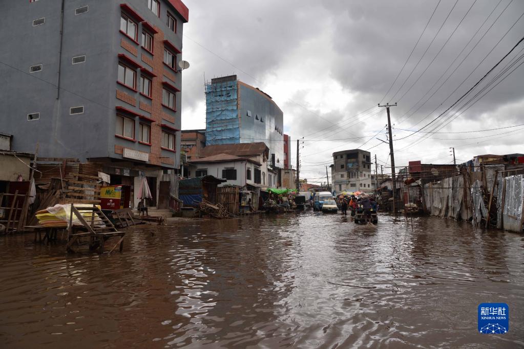 1月25日,在馬達加斯加首都塔那那利佛,暴雨過(guò)后道路被積水淹沒(méi)。