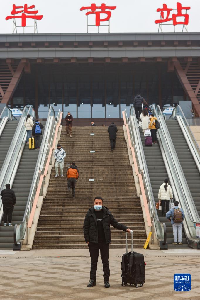 貴州省畢節市七星關(guān)區海子街鎮安山村人彭沙提著(zhù)行李在畢節站站前廣場(chǎng)留影,他準備前往廣東省深圳市(1月26日攝)。彭沙之前在深圳打工6年,此次是去學(xué)習汽車(chē)檢測管理技術(shù)。以前從畢節乘汽車(chē)到貴陽(yáng)轉乘綠皮火車(chē)再到深圳要兩天一夜,現在乘高鐵只要幾個(gè)小時(shí)就能到達。