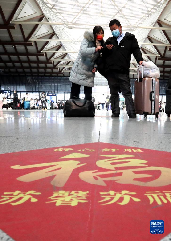 1月27日,在江蘇蘇州站,旅客在候車(chē)大廳等候進(jìn)站。