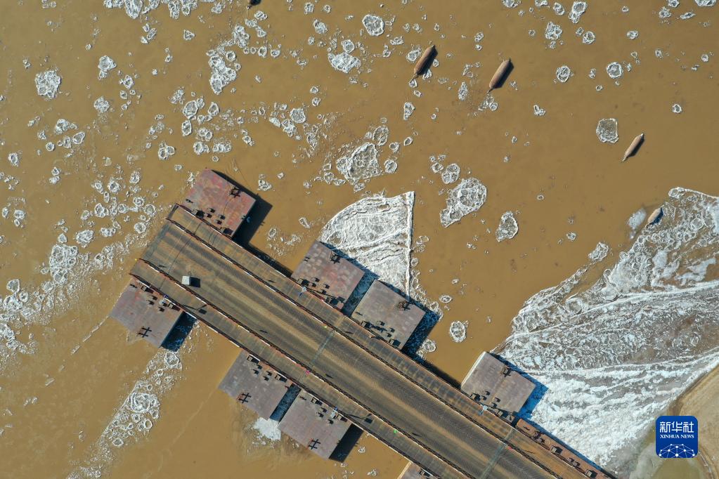 黃河濟南濼口浮橋已經(jīng)拆除,確保流凌通暢(1月27日攝,無(wú)人機照片)。