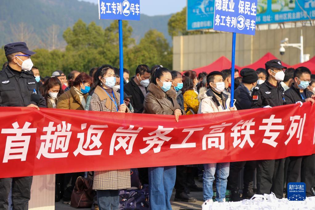 當日,550余名黔北地區務(wù)工人員乘坐G1339次列車(chē)從遵義南站出發(fā)前往浙江杭州,這是貴州省今年節后開(kāi)行的首趟高鐵務(wù)工返崗專(zhuān)列,務(wù)工人員的乘車(chē)費用全部由當地人社部門(mén)承擔。