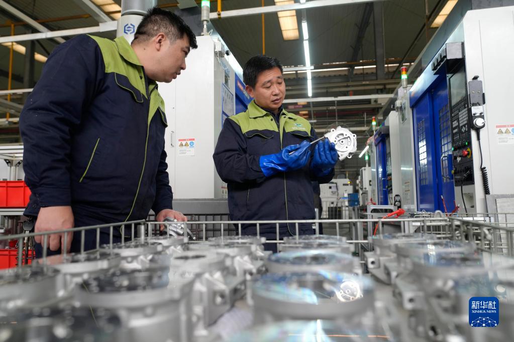 1月27日,在重慶市北碚區一家汽車(chē)零部件企業(yè),工人在汽車(chē)空調壓縮機殼體生產(chǎn)車(chē)間內作業(yè)。