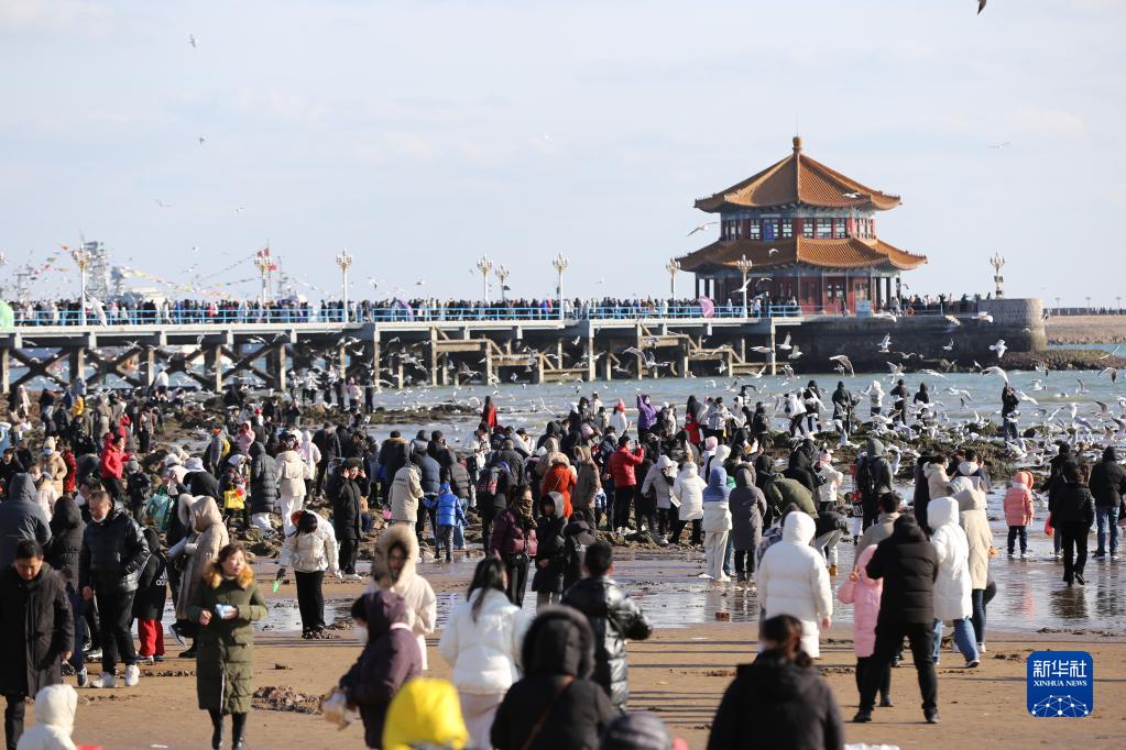 1月25日,游客在山東省青島棧橋風(fēng)景區游玩。