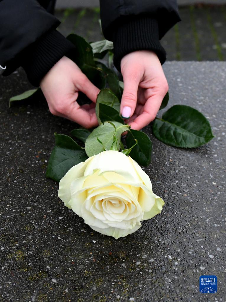 1月27日,一名女子在德國柏林的歐洲被害猶太人紀念碑獻花。