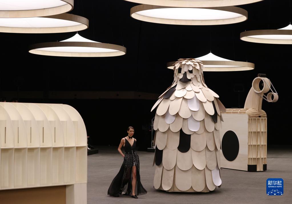 1月24日,模特在法國巴黎高級定制周上展示法國品牌香奈兒2023-2024春夏新品。