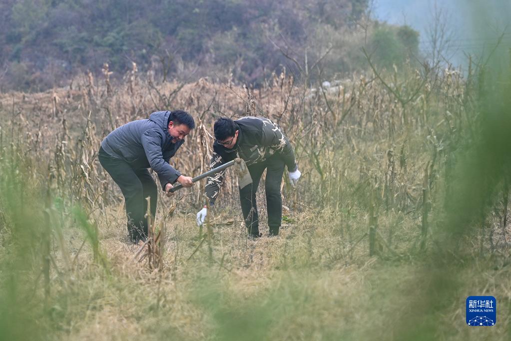 1月28日,人們在貴州省畢節市百里杜鵑管理區鵬程街道箐門(mén)村參加義務(wù)植樹(shù)。