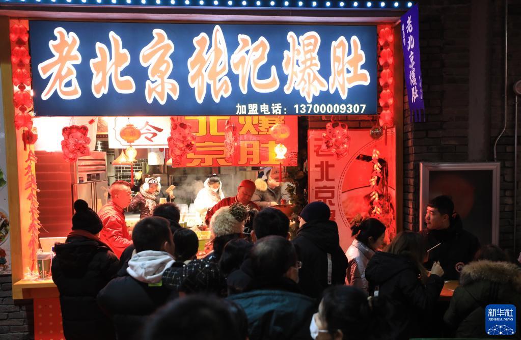 1月23日,市民在沈陽(yáng)新春皇寺廟會(huì )品嘗美食。