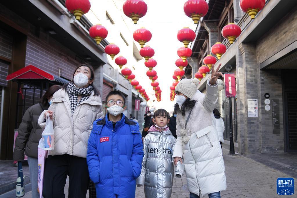 1月28日,在北京市東城區鮮魚(yú)口街,導游何靜(右一)在為游客講解。