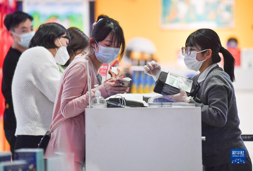 消費者在中免集團??谌赵聫V場(chǎng)免稅店購物(1月19日攝)。