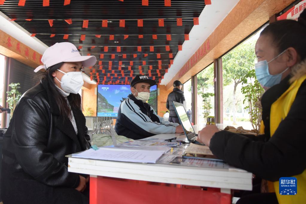 1月29日,云南省紅河哈尼族彝族自治州蒙自市建設者之家黨群服務(wù)中心入駐勞務(wù)公司的工作人員在核對登記乘坐外出務(wù)工包車(chē)的人員信息。