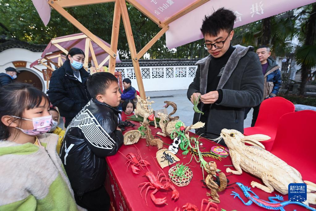 當日,有數百年歷史的浙江省嘉興市秀洲區新塍古鎮元宵民俗“鰲山燈會(huì )”正式亮燈,現場(chǎng)彩燈交相輝映,五彩斑斕。除了民俗燈展外,“鰲山燈會(huì )”現場(chǎng)還有蛋畫(huà)、銀杏畫(huà)、紙扎燈等非遺文化民俗展示。