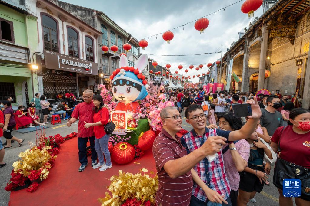 1月28日,人們在馬來(lái)西亞檳城州首府喬治市舉行的檳城廟會(huì )上游玩。