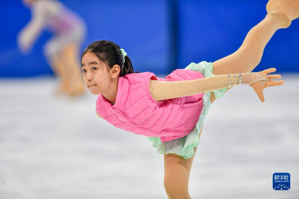 10歲的參訓小學(xué)員娜西巴·艾尼瓦爾在新疆冬季運動(dòng)管理中心訓練(1月29日攝)。