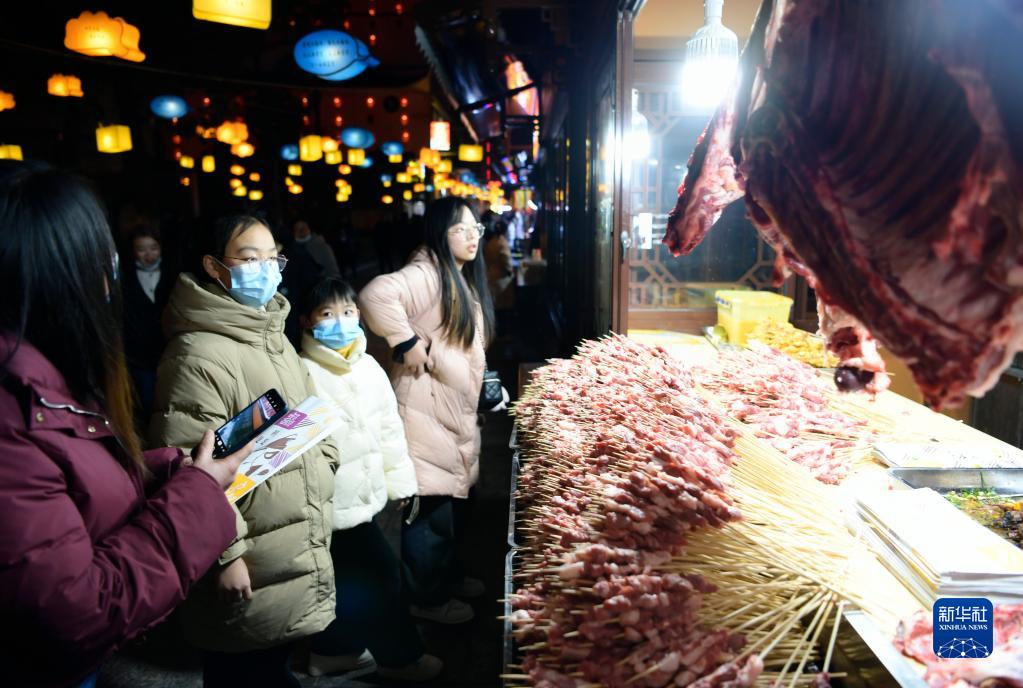 1月29日,游客在宣恩縣仙山貢水旅游區買(mǎi)燒烤肉串。