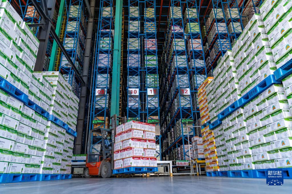 1月29日,工人在安徽省合肥市肥東縣合肥循環(huán)經(jīng)濟示范園內的一家公司農資智能倉庫忙著(zhù)出庫農資。