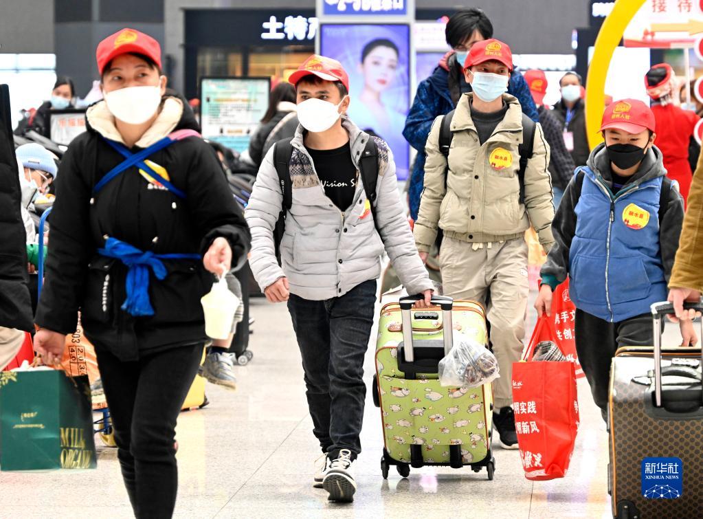 當日,2023年廣西柳州市首趟“點(diǎn)對點(diǎn)”送工服務(wù)專(zhuān)列D3755次列車(chē)從柳州火車(chē)站發(fā)車(chē),500多名來(lái)自柳州市各縣區的務(wù)工人員乘坐動(dòng)車(chē)前往廣東返崗復工。