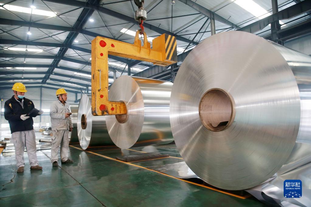1月30日,在安徽省淮北市濉溪經(jīng)濟開(kāi)發(fā)區一家鋁板帶箔加工企業(yè),工人在生產(chǎn)車(chē)間忙碌。