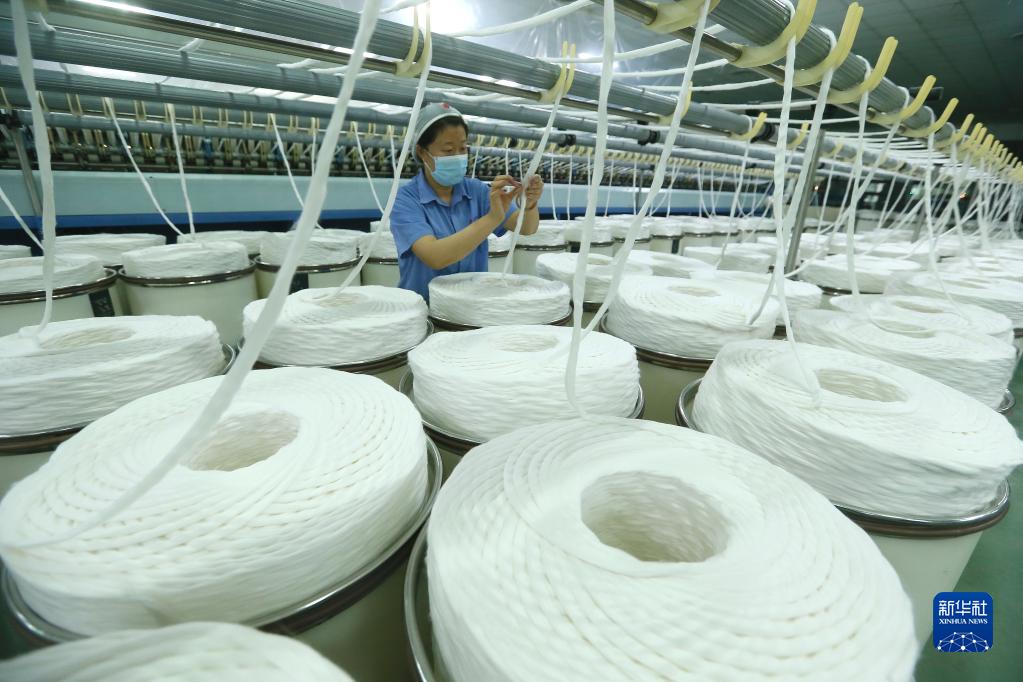 1月30日,山東省青島即發(fā)盛寶紡織有限公司的紡織工人在智能化生產(chǎn)線(xiàn)上生產(chǎn)棉紗產(chǎn)品。