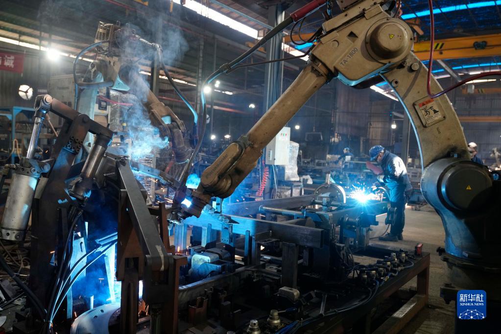 1月30日,在重慶市北碚區一家涂裝技術(shù)企業(yè),機器手臂在焊接汽車(chē)車(chē)身。
