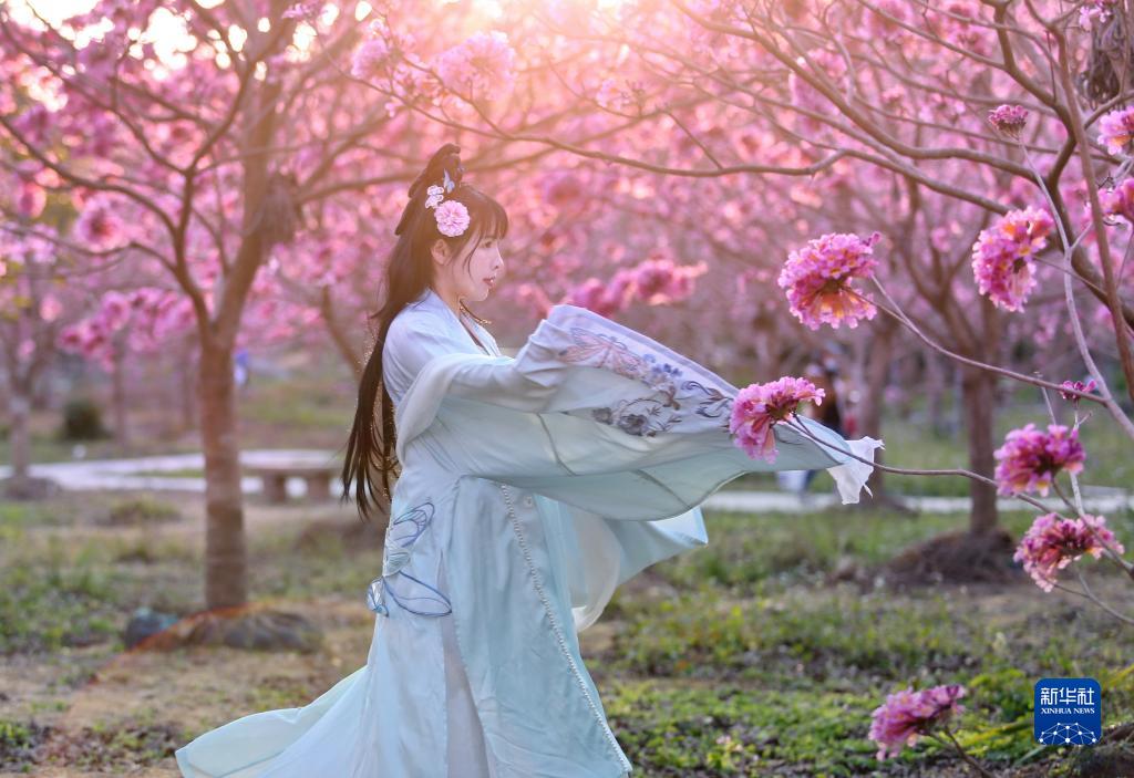 廣東江門(mén):紫花風(fēng)鈴迎春綻放