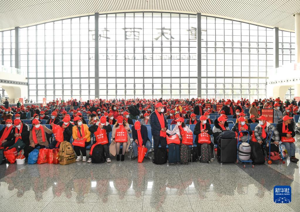 當日,由重慶西開(kāi)往廣州南的D4881次務(wù)工專(zhuān)列順利開(kāi)出,來(lái)自川渝兩地的約890名務(wù)工人員踏上返崗之路,這是2023年從重慶開(kāi)行的首趟務(wù)工定制專(zhuān)列。