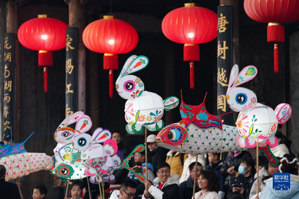 兔年新春,在安徽省黃山市黟縣宏村,當地舉行的花燈研習班邀請游客共同制作兔子形狀花燈。傍晚時(shí)分,五顏六色的“兔燈”在古村中點(diǎn)亮,游客在“鬧花燈”中體驗徽州年俗。