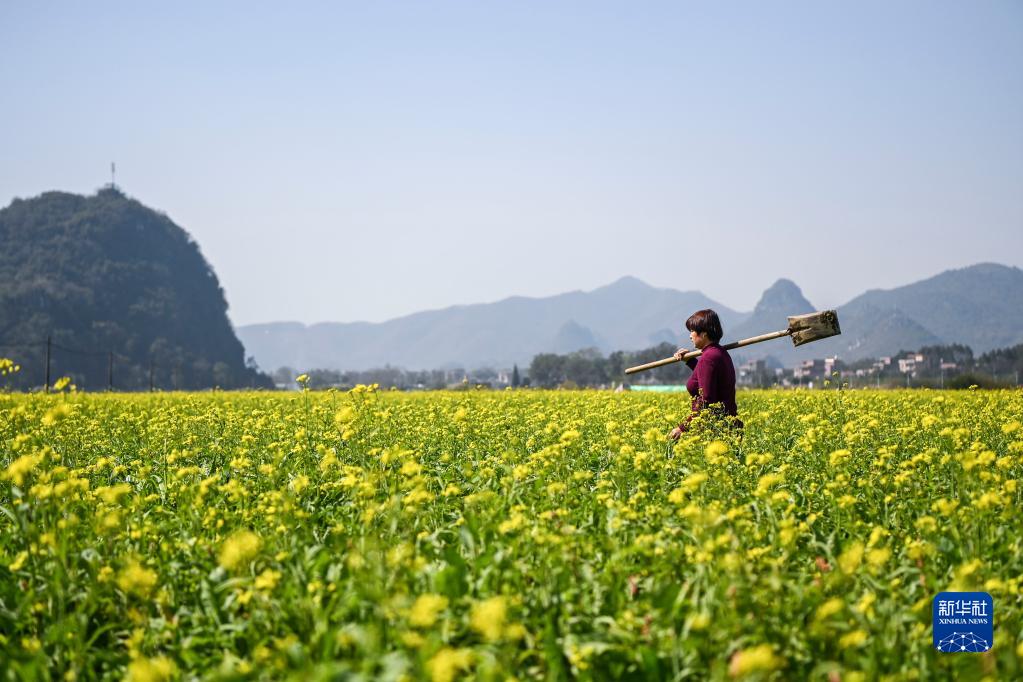 1月30日,在廣西興業(yè)縣石南鎮的一處農田里,當地群眾扛著(zhù)農具準備下地勞作。
