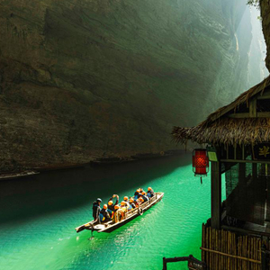 1月28日,游人在鶴峰縣屏山旅游景區乘船游玩。