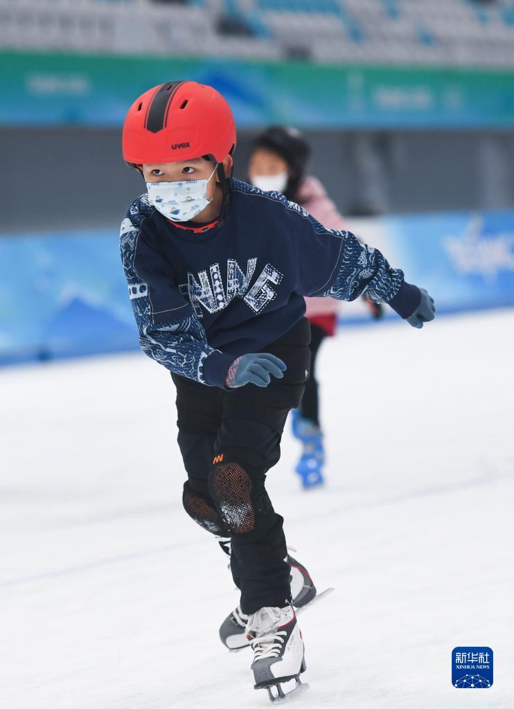 2023年1月22日,小朋友在國家速滑館滑冰。