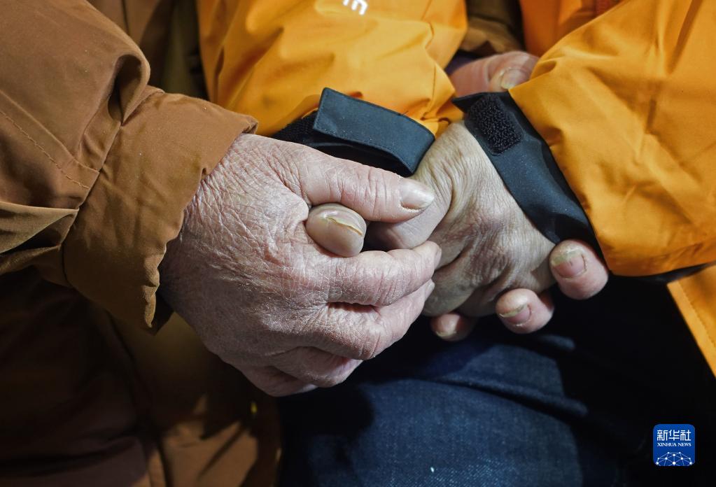 在靖安縣黃龍村,從見(jiàn)到錢(qián)芳勇那一刻起,母親余陳妹一直拉著(zhù)兒子的手(1月30日攝)。