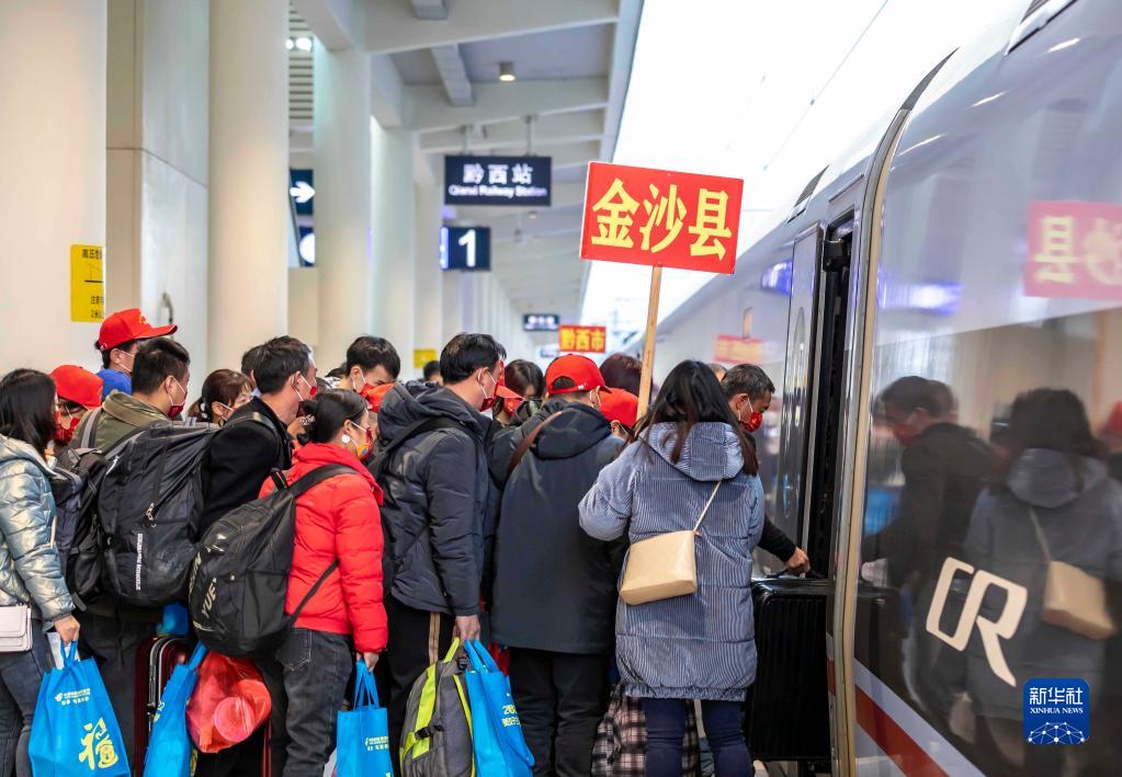 當日,來(lái)自貴州省畢節市的600名務(wù)工人員分別在畢節站和黔西站,免費搭乘動(dòng)車(chē)前往廣東省廣州市返崗務(wù)工,這是今年畢節市通過(guò)粵黔東西部勞務(wù)協(xié)作開(kāi)行的首趟免費“點(diǎn)對點(diǎn)”返崗專(zhuān)列。