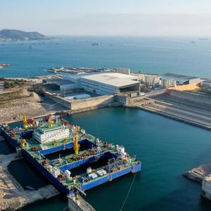 在中交四航局珠海牛頭島沉管智慧工廠(chǎng),施工人員對深中通道海底隧道最后一個(gè)管節(非標準管節、含最終接頭)進(jìn)行測控(1月31日攝)。