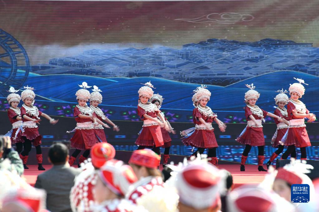 1月31日,演員在貴州省黔東南苗族侗族自治州黃平縣谷隴鎮表演節目。