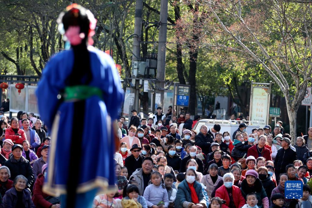 當日,湖南省資興市舉行春節花鼓戲專(zhuān)場(chǎng)演出,讓市民在家門(mén)口就能感受傳統戲曲文化的魅力,在看戲賞戲的歡樂(lè )氛圍中過(guò)大年。