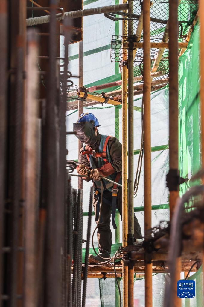 新年伊始,在由海南機場(chǎng)投資建設、中建三局承建的海南中心項目建設工地上,工人們搶抓工期,現場(chǎng)一派繁忙的景象。海南中心項目總投資近百億元,建筑高度428米,主體塔樓94層,預計2025年底項目主體結構封頂、2026年底投入運營(yíng)。項目建成后將成為海南第一高樓。