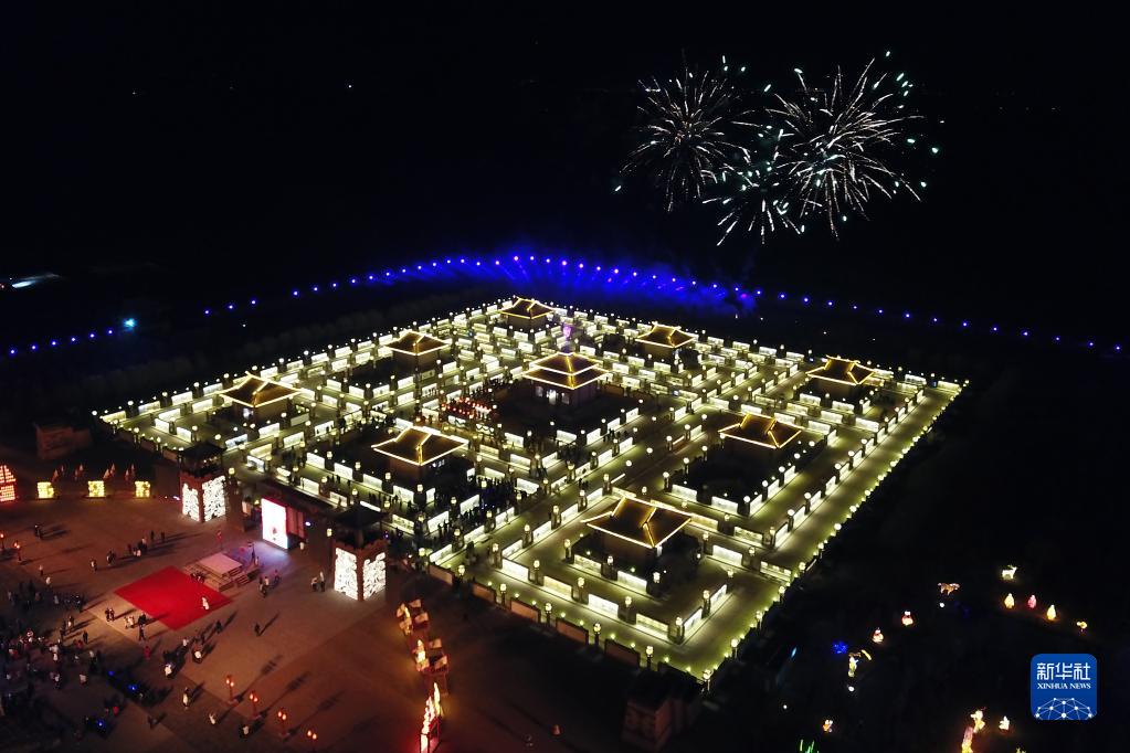 這是1月31日拍攝的九曲黃河燈陣(無(wú)人機照片)。