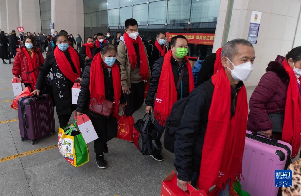 2月1日,來(lái)自成都邛崍市的務(wù)工人員乘坐務(wù)工大巴直通車(chē)來(lái)到成都東站,準備乘坐高鐵。