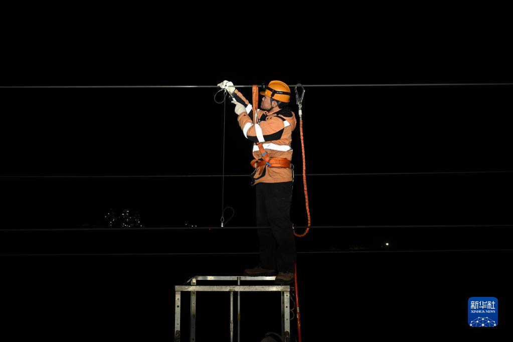 春運期間,中國鐵路上海局集團有限公司南京供電段接觸網(wǎng)維修車(chē)間的接觸網(wǎng)工們冒著(zhù)寒風(fēng),搶抓凌晨“天窗”時(shí)段,對接觸網(wǎng)設備展開(kāi)全方位檢修,排除隱患,確保列車(chē)通行安全。