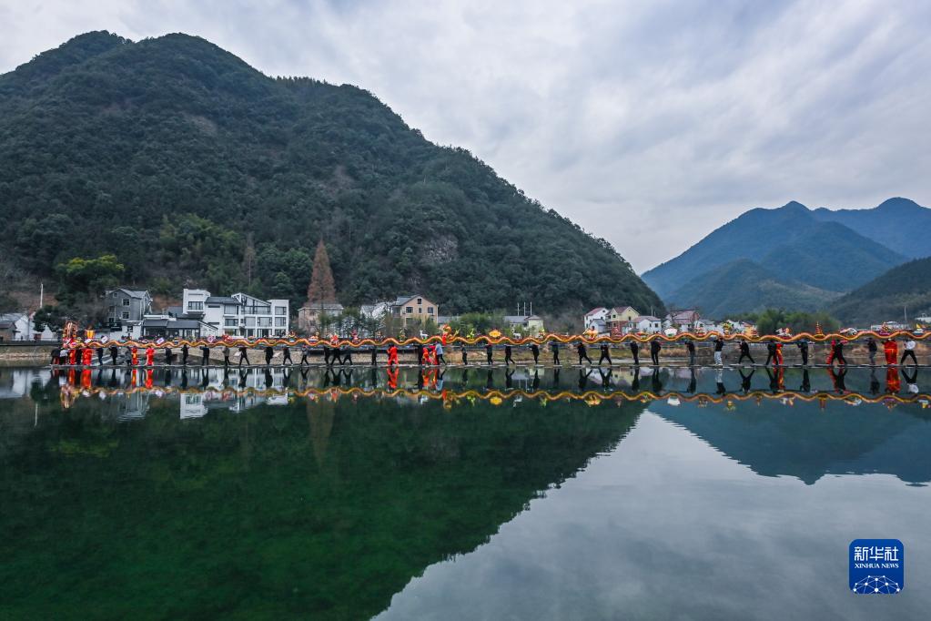 當日是農歷正月十一,在梅花鑼鼓的伴奏下,浙江省杭州市富陽(yáng)區湖源鄉窈口村女子板龍隊舉起由50余張板凳連起來(lái)的百米板龍舞動(dòng)起來(lái),拉開(kāi)了湖源鄉新春系列迎元宵活動(dòng)的序幕。