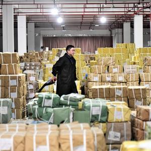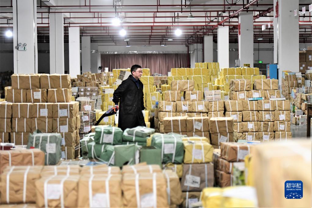 1月31日,在湖南省郴州市萬(wàn)信達工業(yè)園新華書(shū)店倉儲中心,工作人員在搬運教材。
