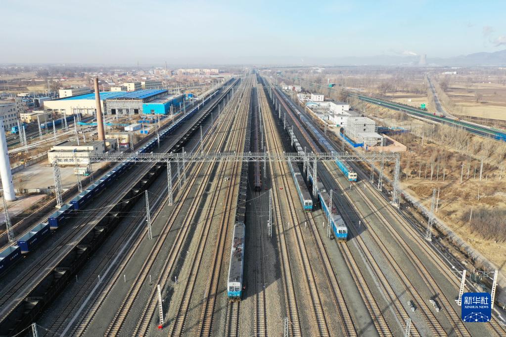 這是2月1日在呼和浩特南站拍攝的運煤列車(chē)(無(wú)人機照片)。