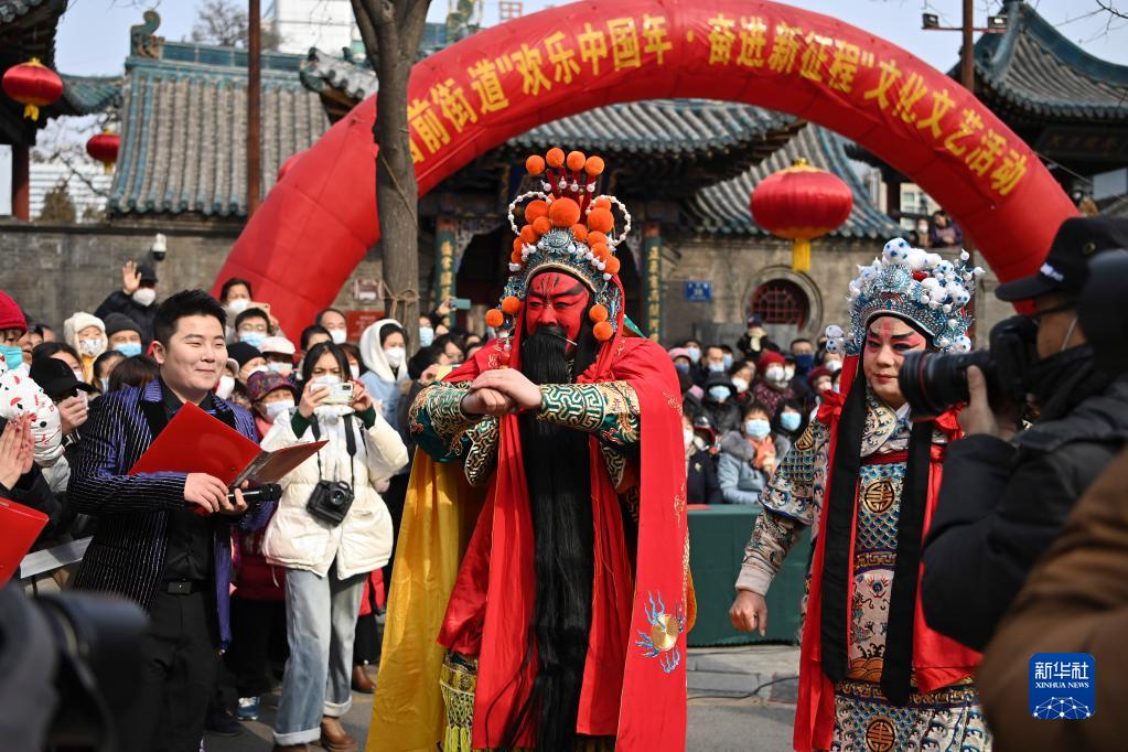 2月2日,在山西太原迎澤區廟前街道舉辦的民俗文化惠民活動(dòng)上,演員和現場(chǎng)觀(guān)眾互動(dòng)。